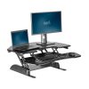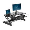 - Two decks: top display surface for monitors, and a lower keyboard/mouse deck.